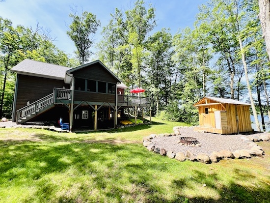 - Little Sand Lodge — Double-fireplace comfort: gas fireplaces on both levels, huge deck over calm bay, expansive yard. Sleeps 8.