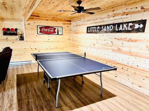 Christine R. – Little Sand Lodge, February 2026 “This was our second year renting the Little Sand Lodge for the American Birkebeiner cross country ski races. We like the quiet and peaceful location of the cabin and a short drive to Hayward. The cabin is comfortable and well stocked. The kids loved the loft and everyone made good use of the ping pong table. I found the house guide for our phones very useful during our stay, any questions that we had we were able to find on the app.”